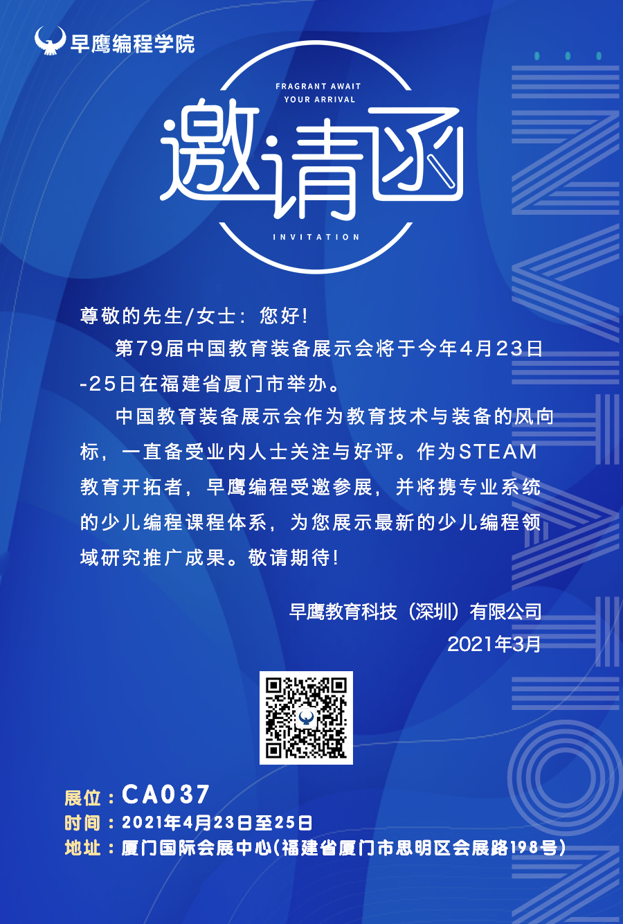 STEAM教育開拓者早鷹編程學(xué)院與您相約廈門邀您蒞臨??